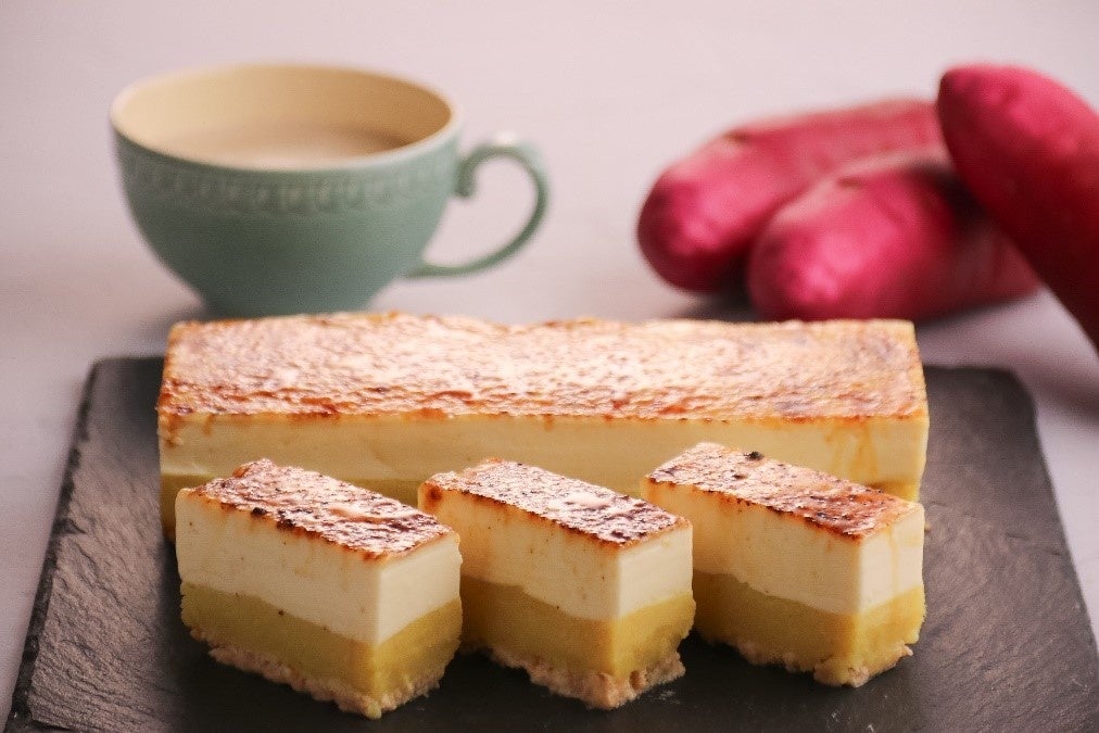 ほくほくのサツマイモを漉したなめらかなおいもの生地に、キビ砂糖の優しい甘さとクリームチーズの酸味が絶妙のレアチーズ生地を重ねます。