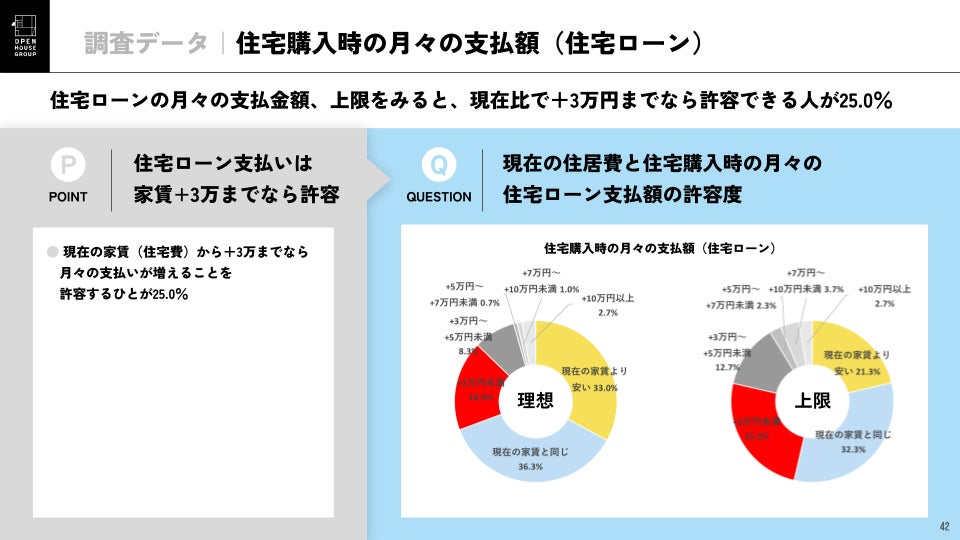 ・現在の家賃(住宅費)から+3万円までなら月々の支払いが増えることを許容する人が25.0%
