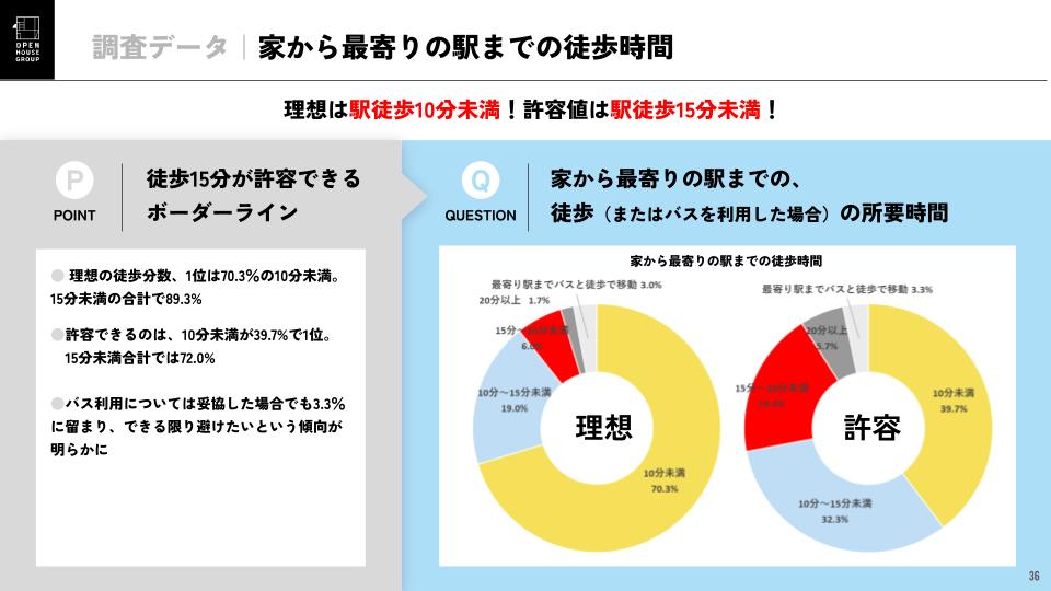 理想は駅徒歩10分未満が7割!15分未満合計だと9割に!徒歩分数の許容値は15分、という結果が明らかに。