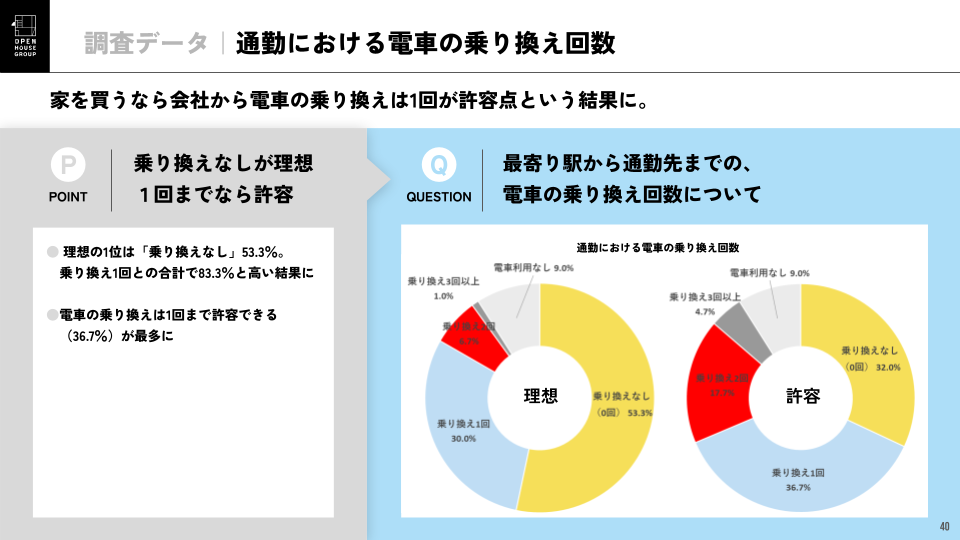 ・理想の1位は「乗り換えなし」53.3%。乗り換え1回との合計で83.3%と高い結果に