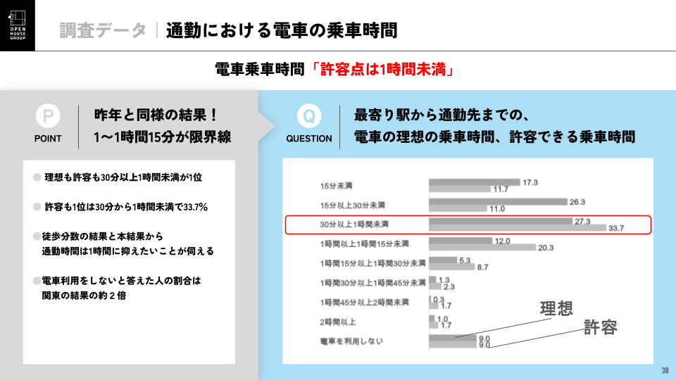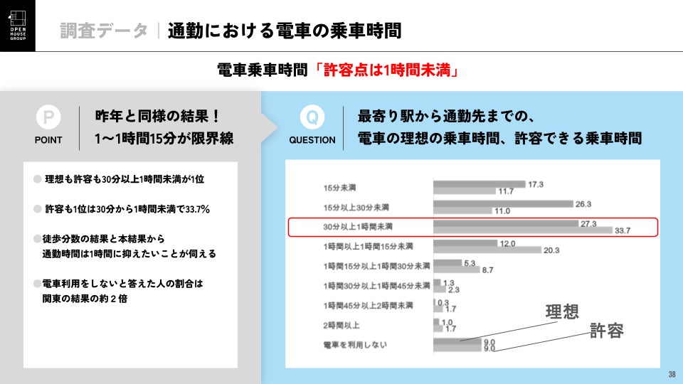 通勤先までの乗車時間、1時間以内であれば許容する方が8割に!