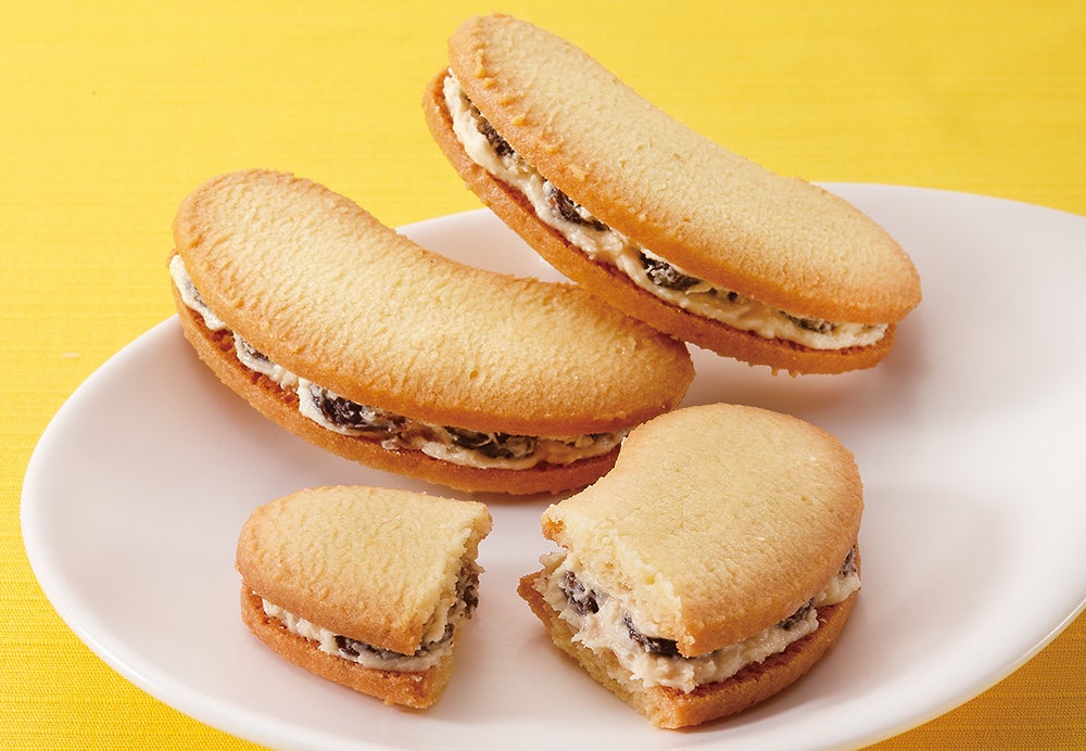 『東京ばな奈のレーズンサンド』は、バナナ香るホワイトショコラクリームに、ふっくらやわらかい贅沢レーズンをたっぷりサンドしています。ウォッカとジャスミン茶で風味豊かにレーズンを漬けこみました。外側のクッキーは食べて楽しいサクサク食感!日が経つにつれてしっとりと変化していく食感にも注目です。東京のお土産としてはもちろん、毎日のおやつにもピッタリ!