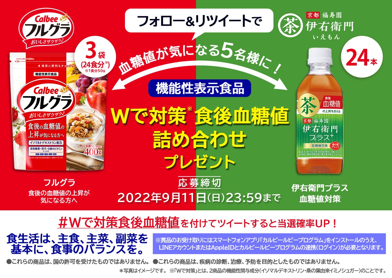 応募方法:カルビー「フルグラ®」【公式】Twitterアカウント(calbee_frugra)をフォローの上、該当のツイートをリツイート