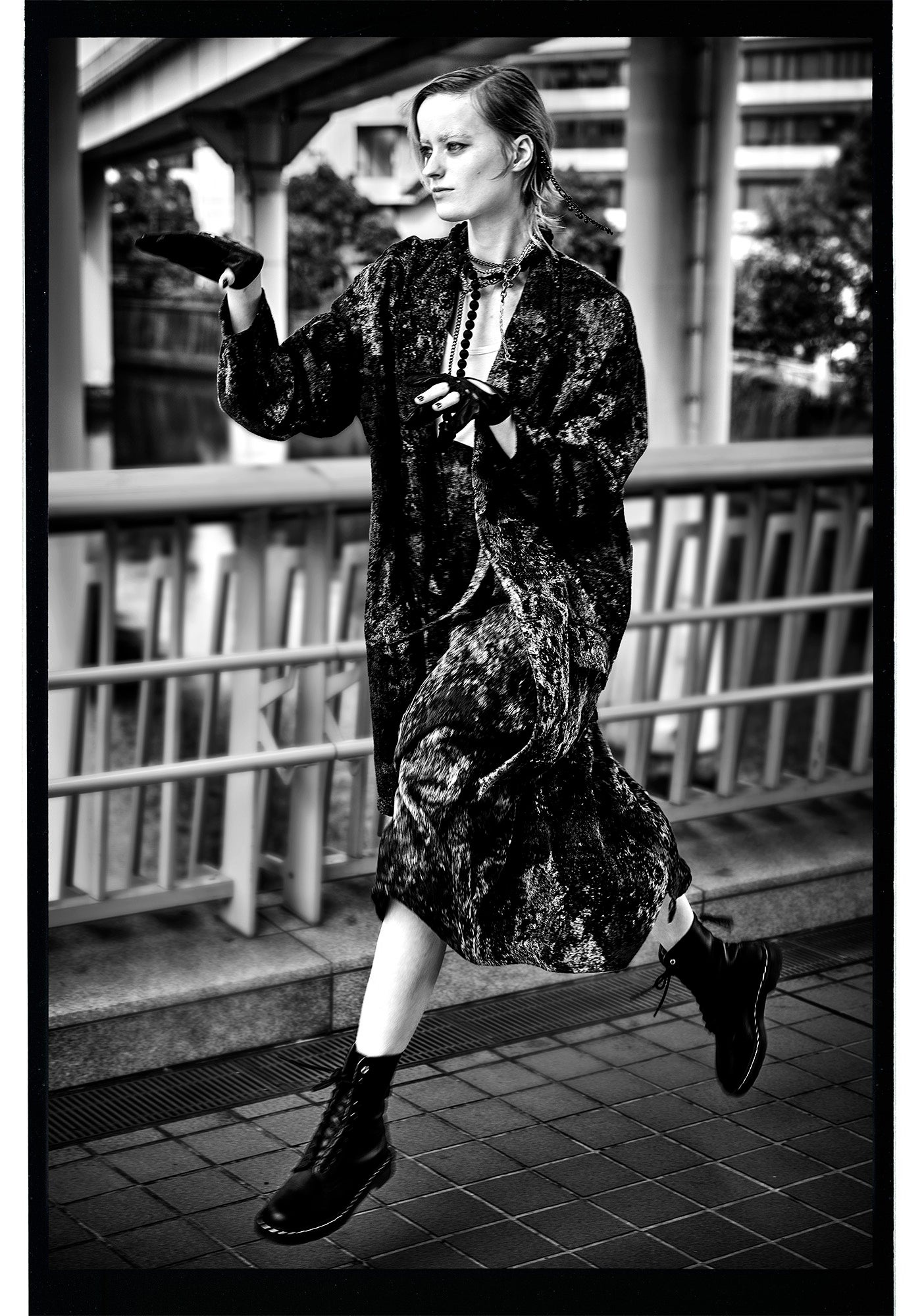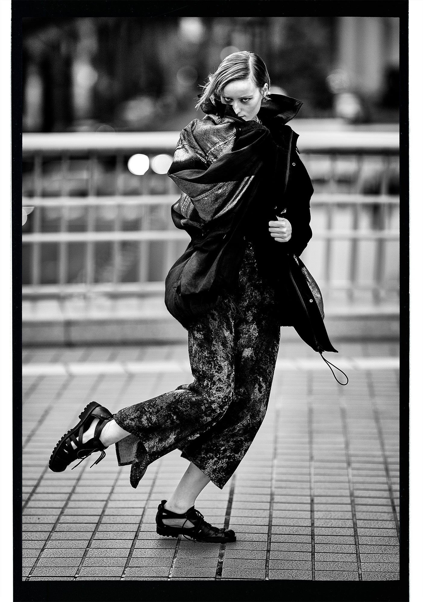 代表的な白黒写真の中で、東京の路上に映るY’sの服は、エネルギーを内包しながら、力強い存在感を放っている。