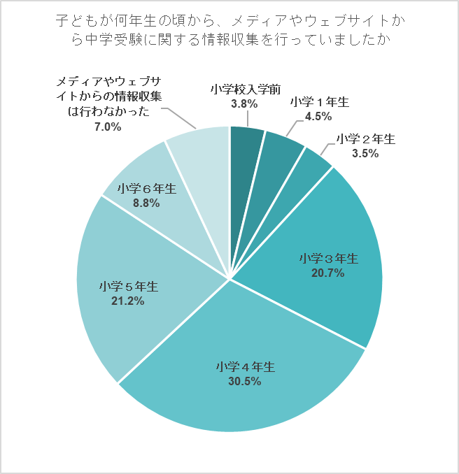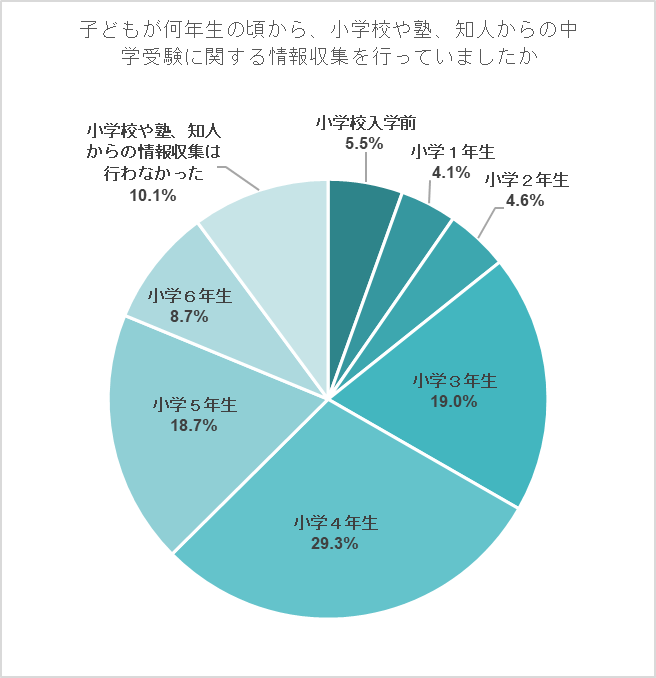 情報収集を始めた時期 小学3・4年生が多数 中学校のイベントや説明会は小学5年生が最多