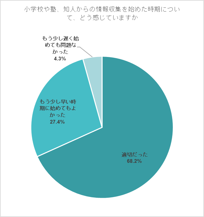 小学校や塾、知人からの情報収集を始めた時期について、どう感じていますか。(n=737、単一回答方式)