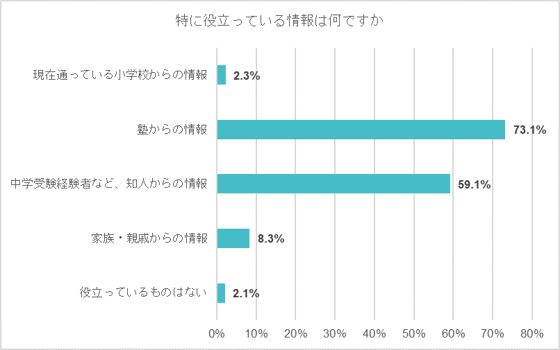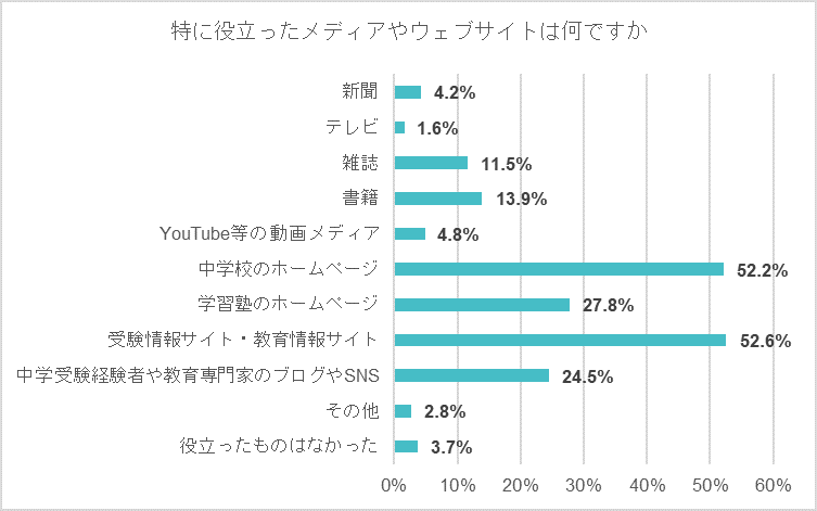 中学受験の情報収集に役立った手段は「受験情報サイト・教育情報サイト」「中学校のホームページ」「塾からの情報」