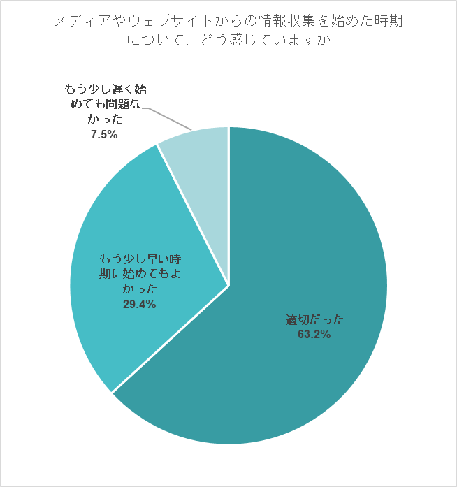 メディアやウェブサイトからの情報収集を始めた時期について、どう感じていますか。(n=763、単一回答方式)