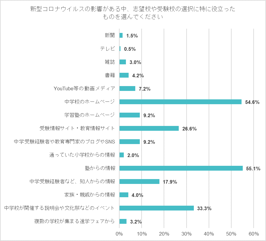 受験情報収集に「コロナの影響あった」現中学生保護者8割超 コロナ下で役立った手段は「中学校のホームページ」