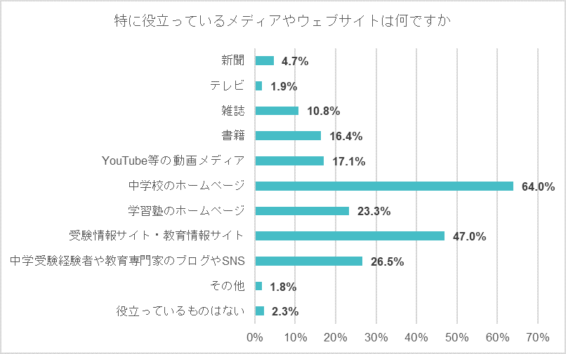 中学受験を予定している小学生保護者が役立てている手段は「中学校のホームページ」「塾からの情報」