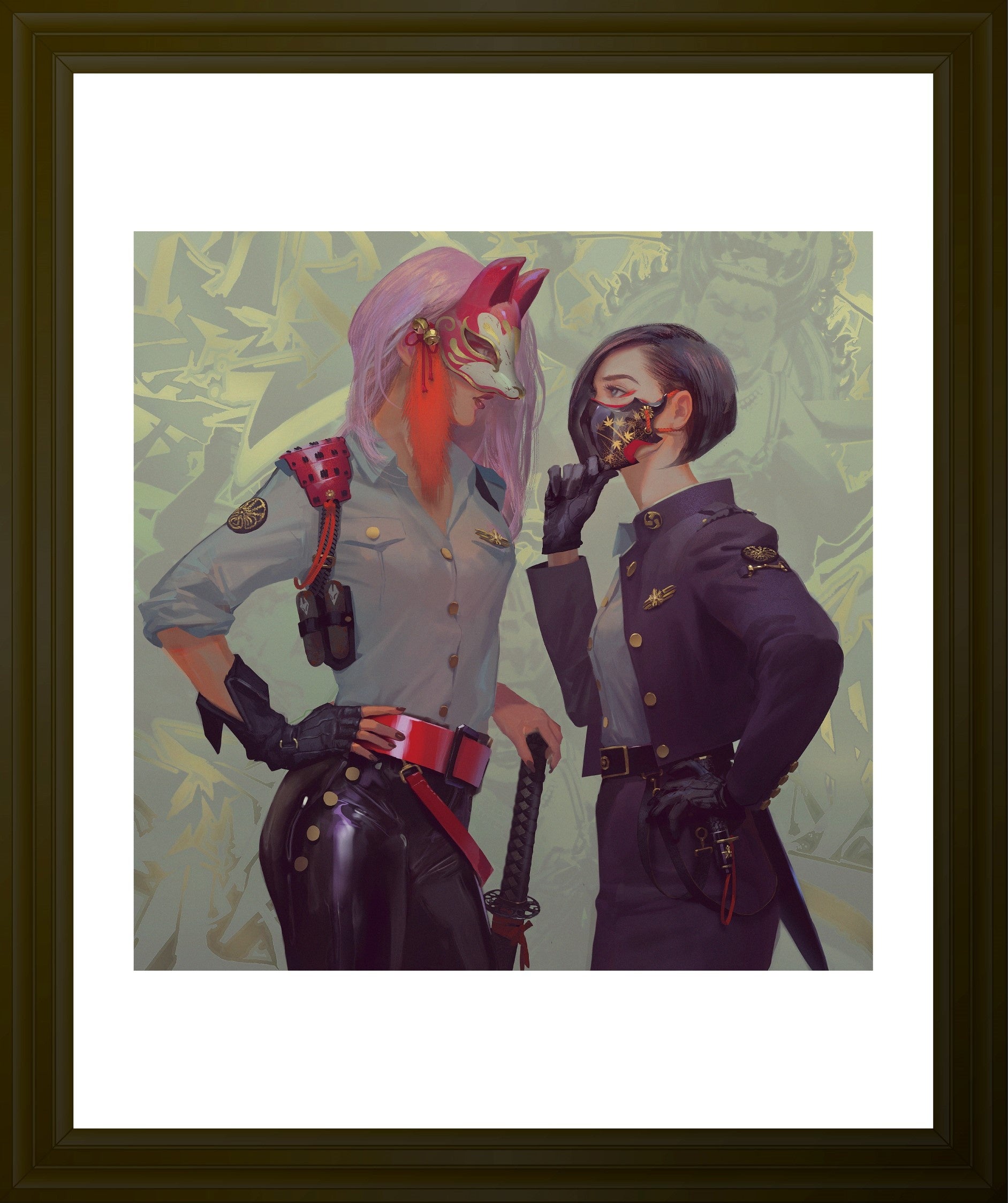 『戯画☆桃太郎奇譚』複製画 額装(プリモアート)「ダンと菊助」