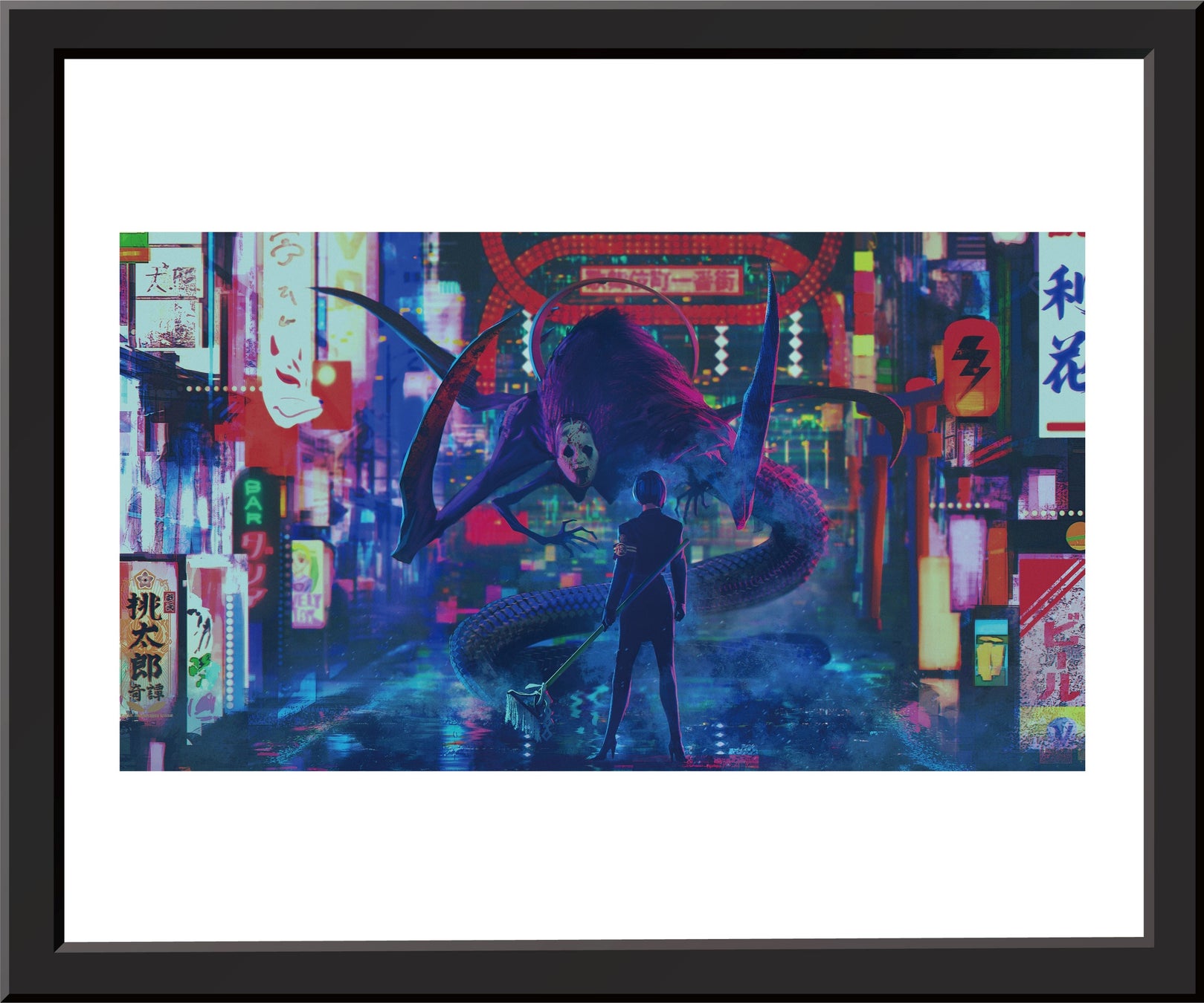 『戯画☆桃太郎奇譚』複製画 額装(プリモアート)「新宿騒乱3」