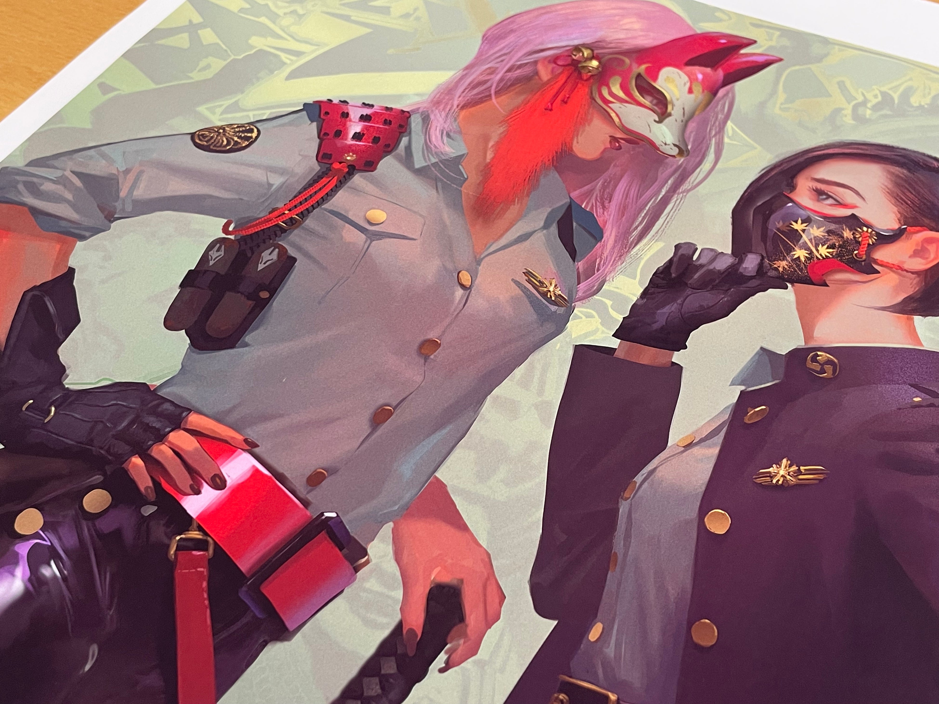 今回、書籍に収録されている作品が複製画として誕生。繊細な筆致による世界観を、細部まで色鮮やかに活き活きと再現。複製画の第1弾は「新宿騒乱3」と「ダンと菊助」の2作品です。