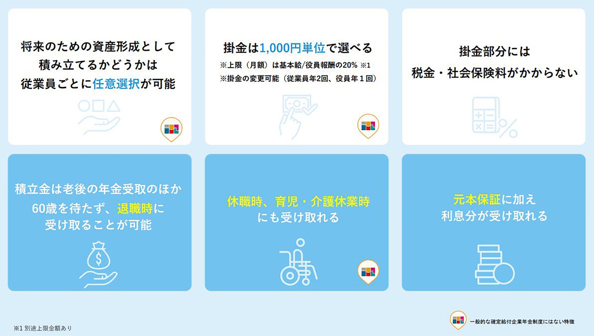 従業員が任意で加入できます。これにより、各自のライフステージや経済状況に応じて資産形成を開始するタイミングを柔軟に選択できます。