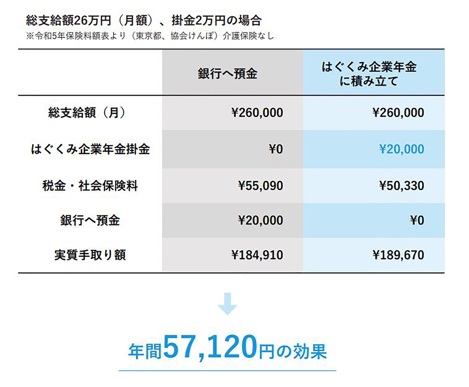 ■毎月の給与支給額26万円を、掛金2万円で積み立てた場合のシミュレーション