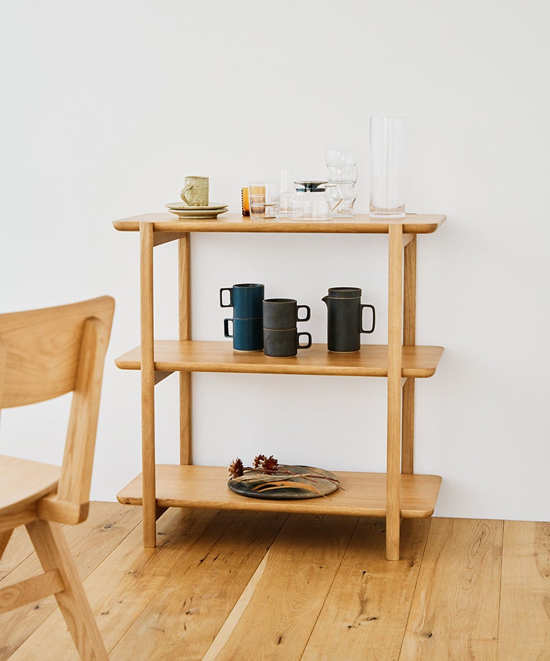 収納や飾り棚など、使う人によってさまざまな見え方に変化できるオープンシェルフ3型、多用途で移動もしやすいラダーハンガーや同サイズで作成したミラーをご用意いたしました。