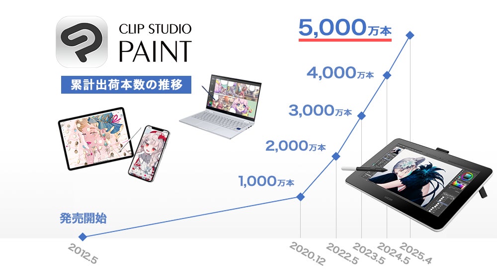 イラスト・マンガ・Webtoon・アニメーション制作アプリ「CLIP STUDIO PAINT」の全世界における累計出荷本数が5,000万本に