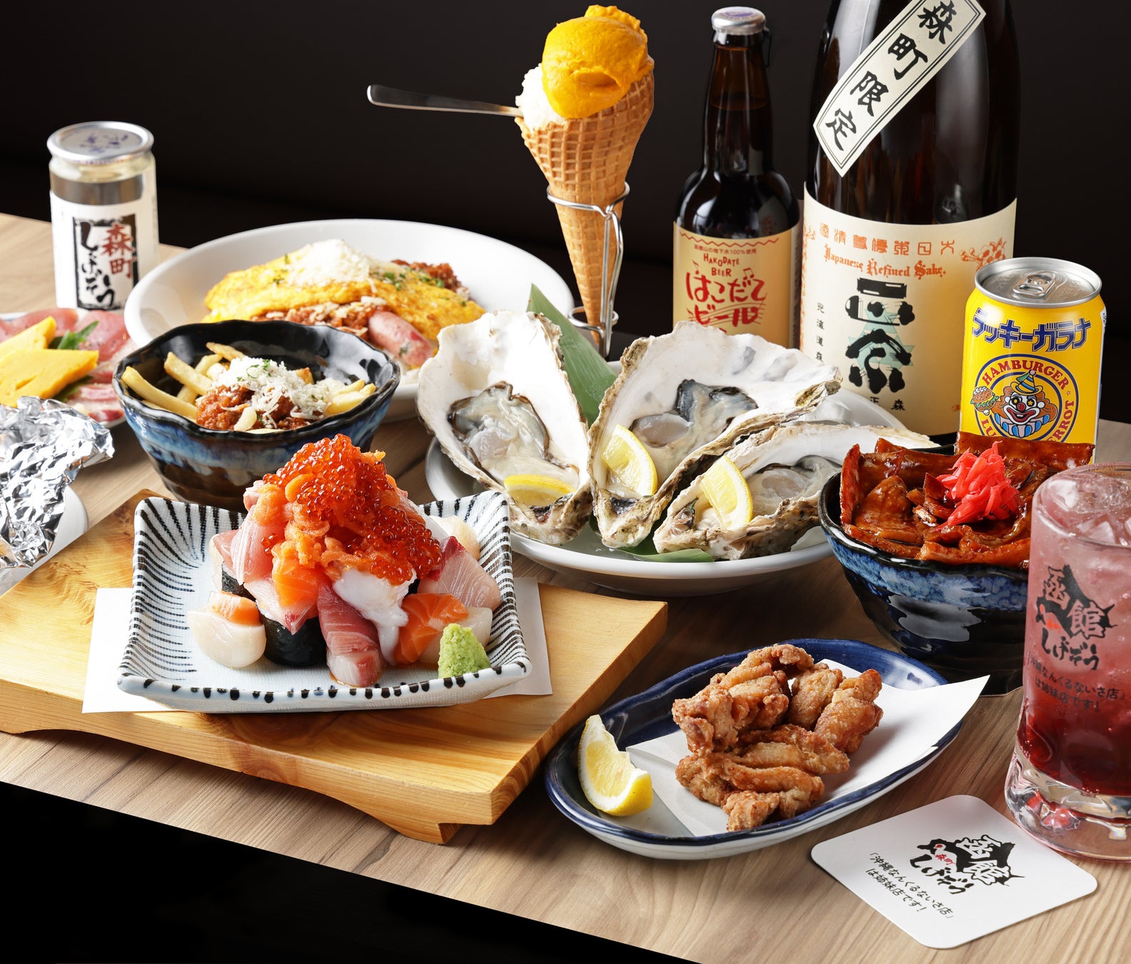 北海道直送の新鮮な魚介やイカ、ひこま豚、濃厚でまろやかなチーズなど、こだわりの厳選素材をリーズナブルに楽しめる「函館炉端焼きしげぞう」。