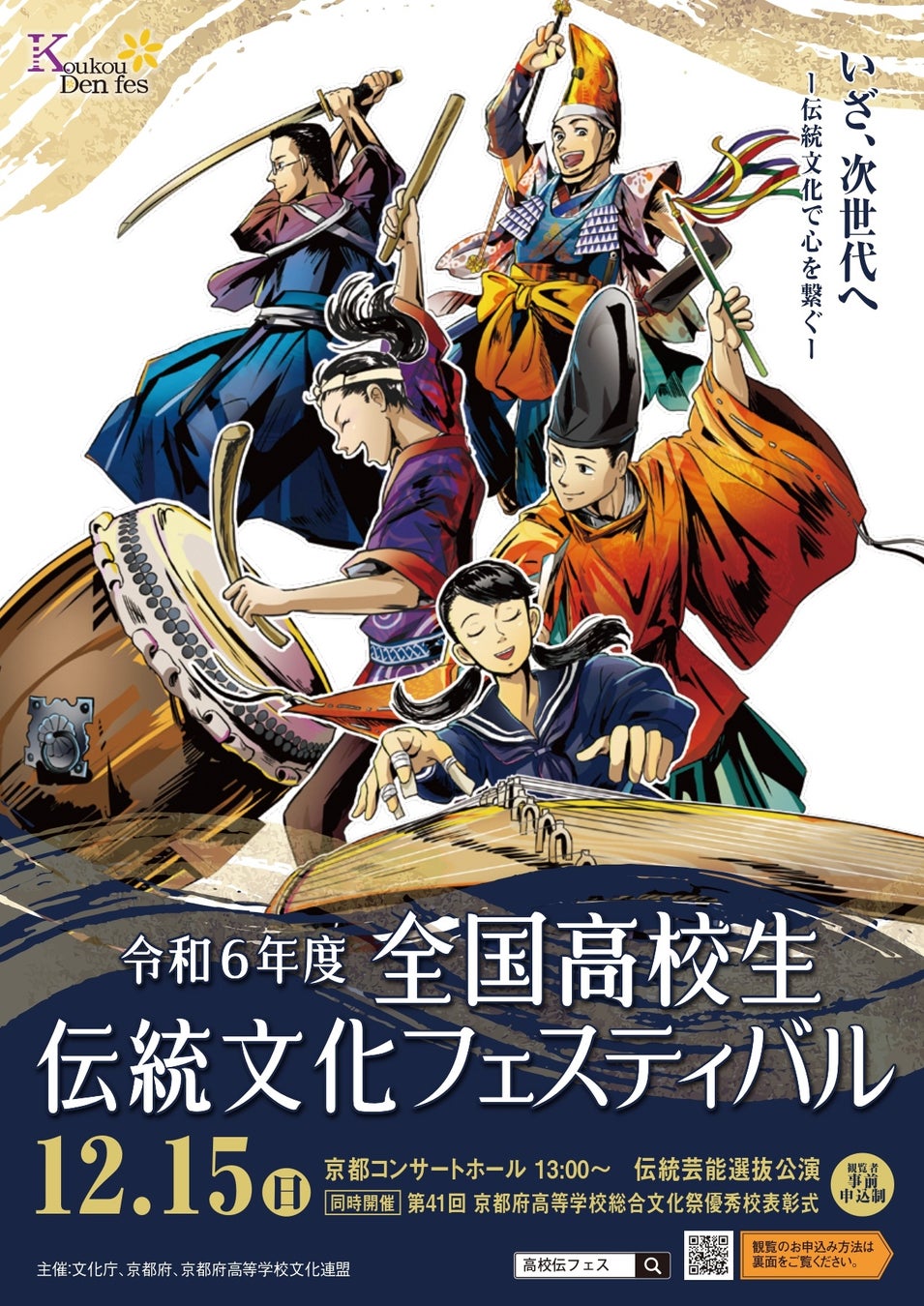 ■文化庁、京都府、京都府高等学校文化連盟では、伝統文化の継承・発展に取り組む高校生の“晴れの舞台”として12月に開催する「令和6年度全国高校生伝統文化フェスティバル」について、「伝統芸能選抜公演」の一般観覧者を9月27日から募集します。