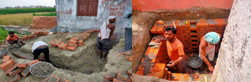 幼稚園の教室と衛生設備の建設の様子(写真:プラン・インターナショナル)