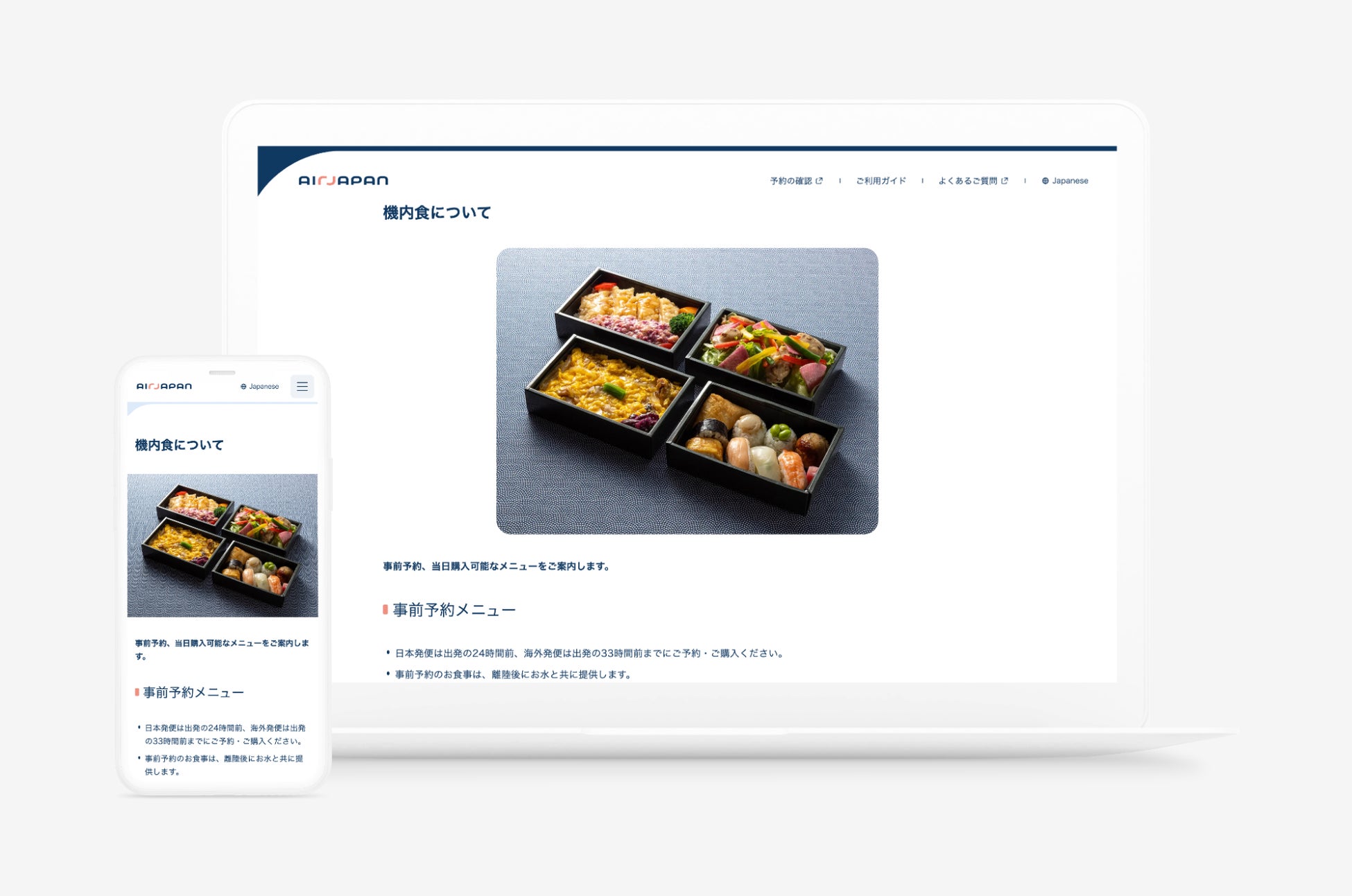 日・英の言語対応に加え、就航先地域のユーザーに快適に利用してもらえるよう、就航先言語にも対応することを想定して作成しています。