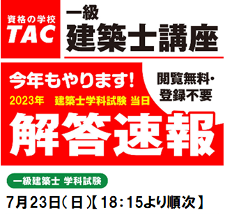 7/23(日)実施の一級建築士試験の解答速報を試験当日の18:15頃よりホームページで順次公開いたします。