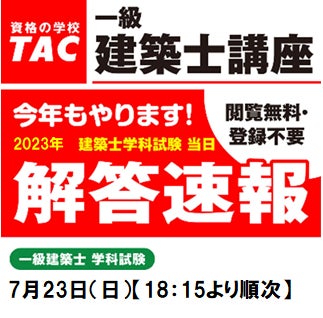 資格取得に向けた教育サービスを展開しているTAC株式会社(東京都千代田区、代表取締役社長: 多田 敏男)は、7/21(金)の一級建築士設計製図試験の課題についてのTACの見解を試験当日の14:00頃よりホームページで公開いたします。