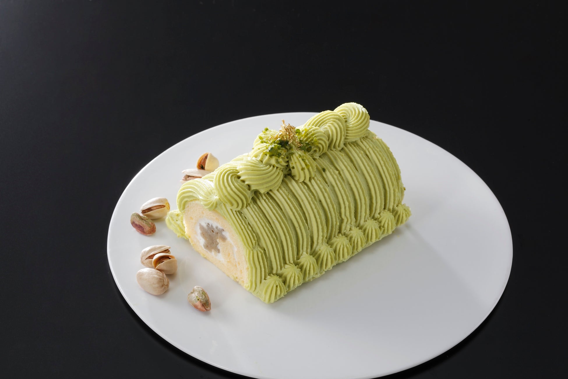そぼろ状にした笠間産の和栗をスポンジ生地で包み、ピスタチオのクリームを使用した贅沢なマロンシャンテリーのロールケーキです。