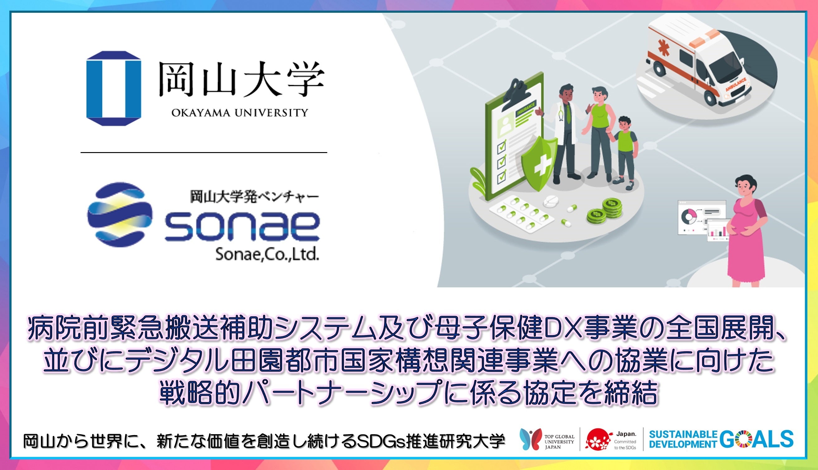 【岡山大学】病院前緊急搬送補助システム及び母子保健DX事業の全国展開、並びにデジタル田園都市国家構想関連事業への協業に向けた戦略的パートナーシップに係る協定を締結
