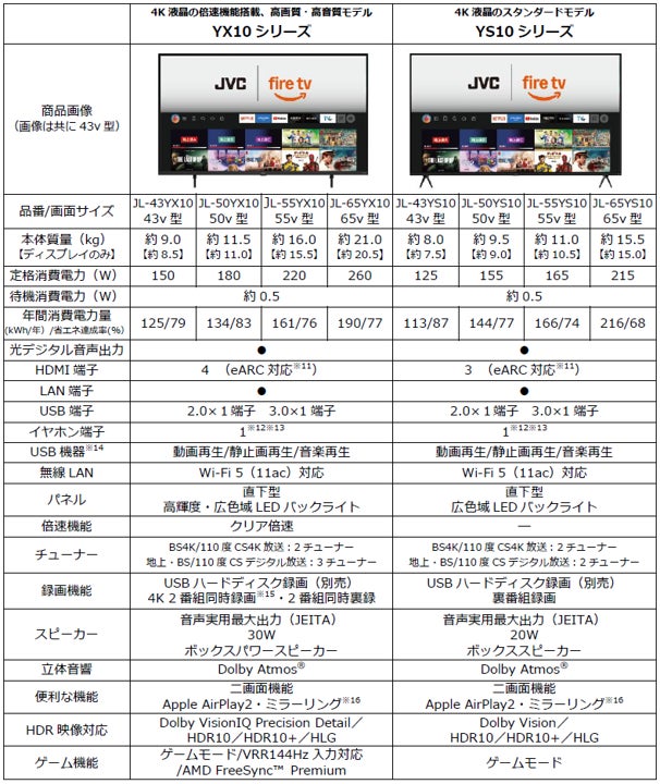 今回発売するYX10シリーズは4K液晶の倍速機能搭載、高画質・高音質モデルとなり、YS10シリーズは4K液晶のスタンダードモデルとなります。