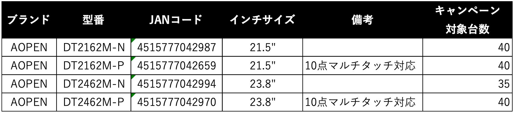 【キャンペーン対象製品及び台数】