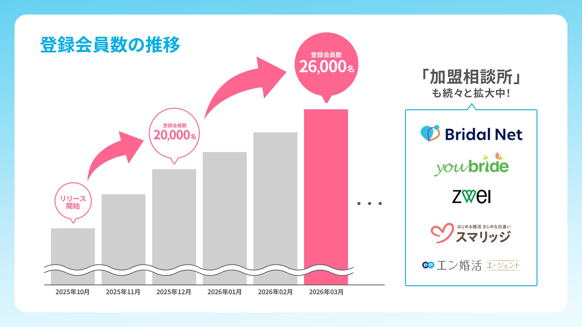 3月には、オンライン結婚相談所「エン婚活エージェント」が新たに参画するなど、婚活事業者との連携を拡大しています。これにより、オンライン上でも幅広い出会いの機会を提供できる環境を構築しています。