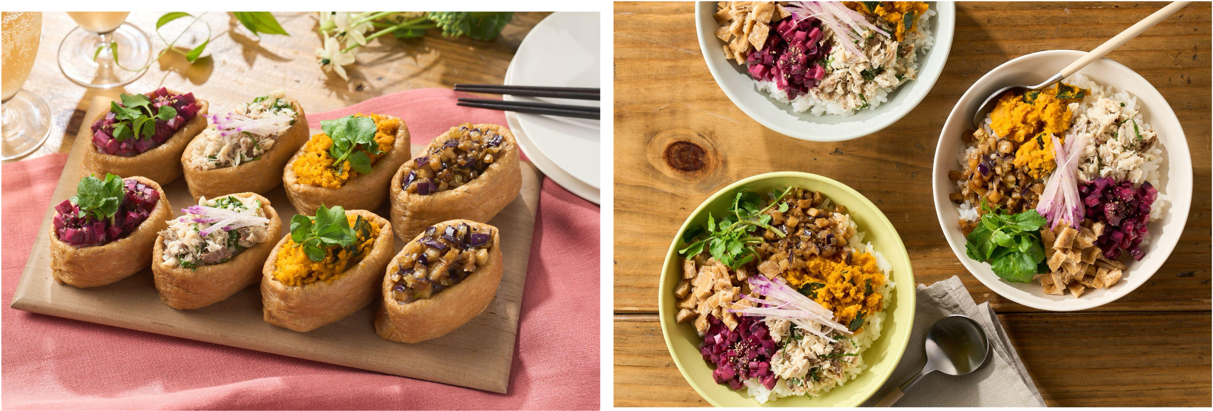 その「YUKIYAMESHI」の代名詞ともいえる“いなり寿司”が、「#みんなにうれしいプロジェクト」の第1弾として、Kit Oisixで初登場します。誰もがご自宅でハレの日を楽しく過ごしていただけるよう、いなり寿司の形だけでなく、同じ材料でより簡易に作れる丼ぶりのレシピも同封しています。
