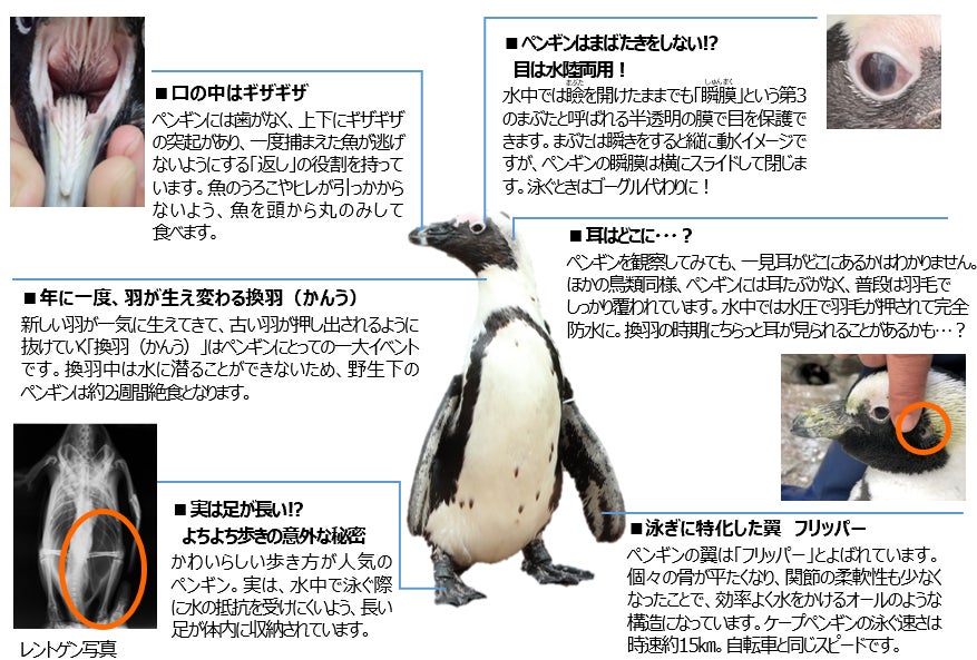 そんなケープペンギンの体には隠れた秘密が盛りだくさん。サンシャイン水族館のペンギンたちを観察してみましょう。