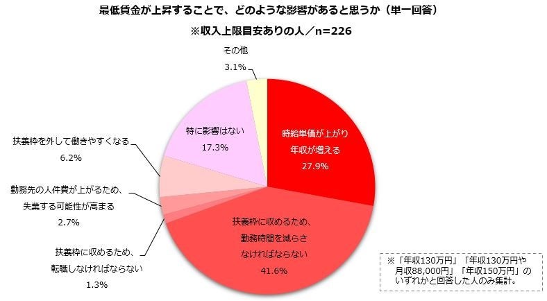 2.収入上限ありの人に、最低賃金の上昇が与える影響「勤務時間減らす」41.6%