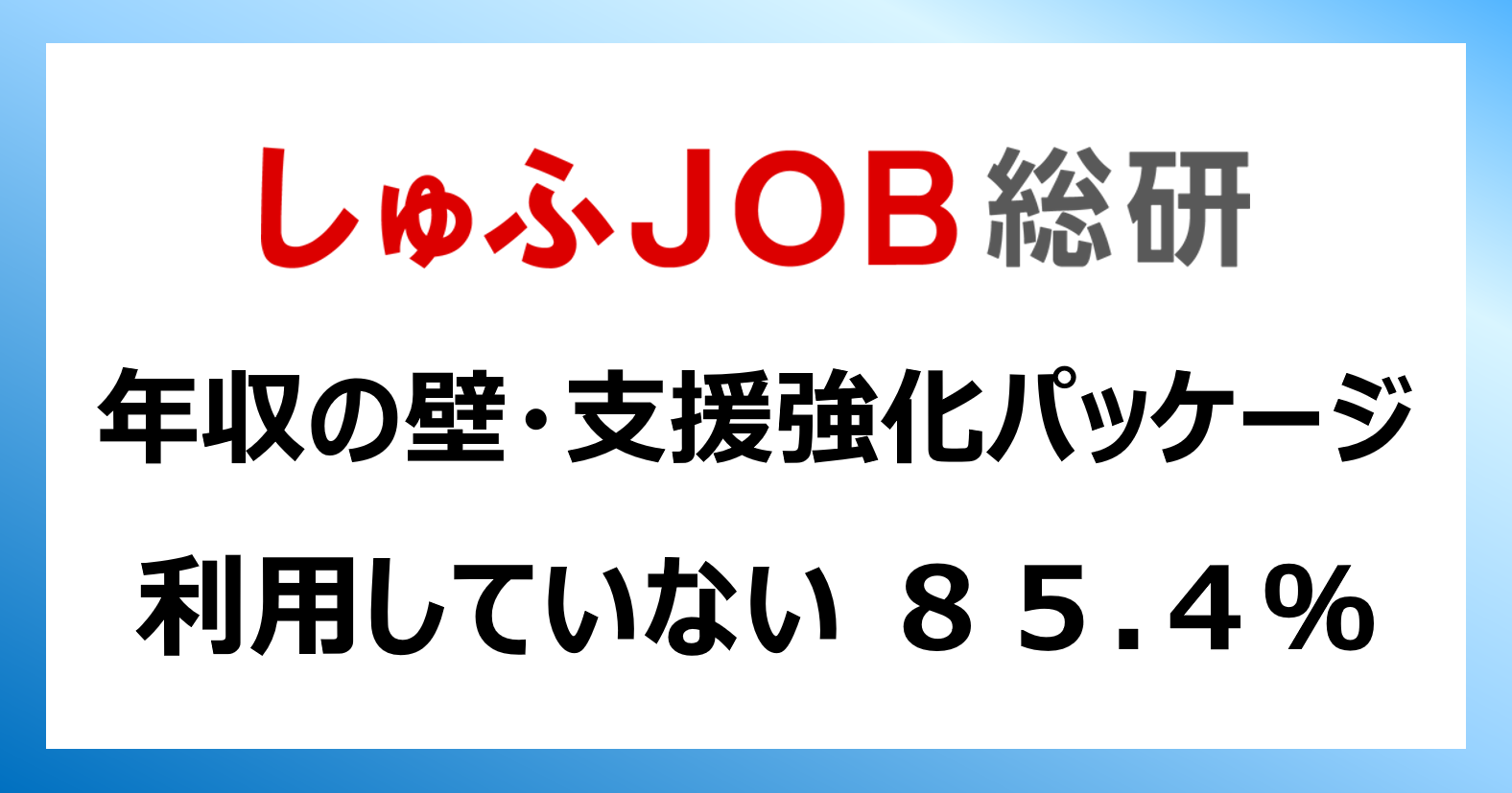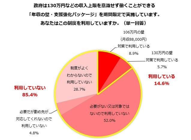 「年収の壁・支援強化パッケージ」開始から一年。主婦・主夫層はどれくらい使ってる?「利用していない」85.4%