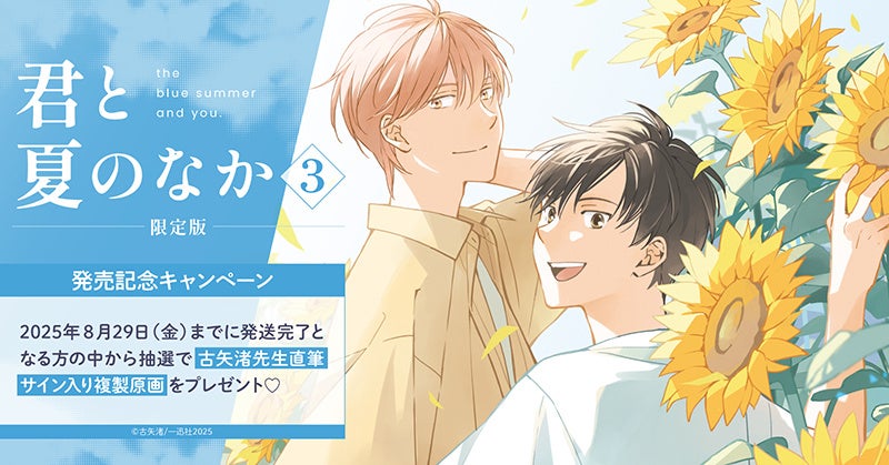 直筆サイン入り複製原画が当たる!古矢渚先生『君と夏のなか(3) 限定版』発売記念キャンペーン開催!【ホーリンラブブックス】