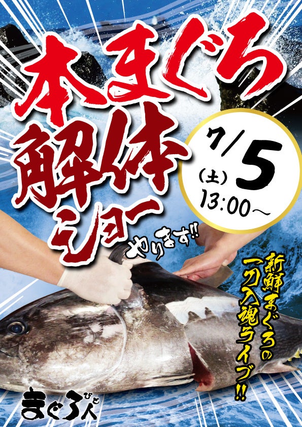 【目の前で豪快に!】7/5(土)13時より「こだわり廻転寿司 まぐろ人 秋葉原店」にて『本まぐろ解体ショー』を開催