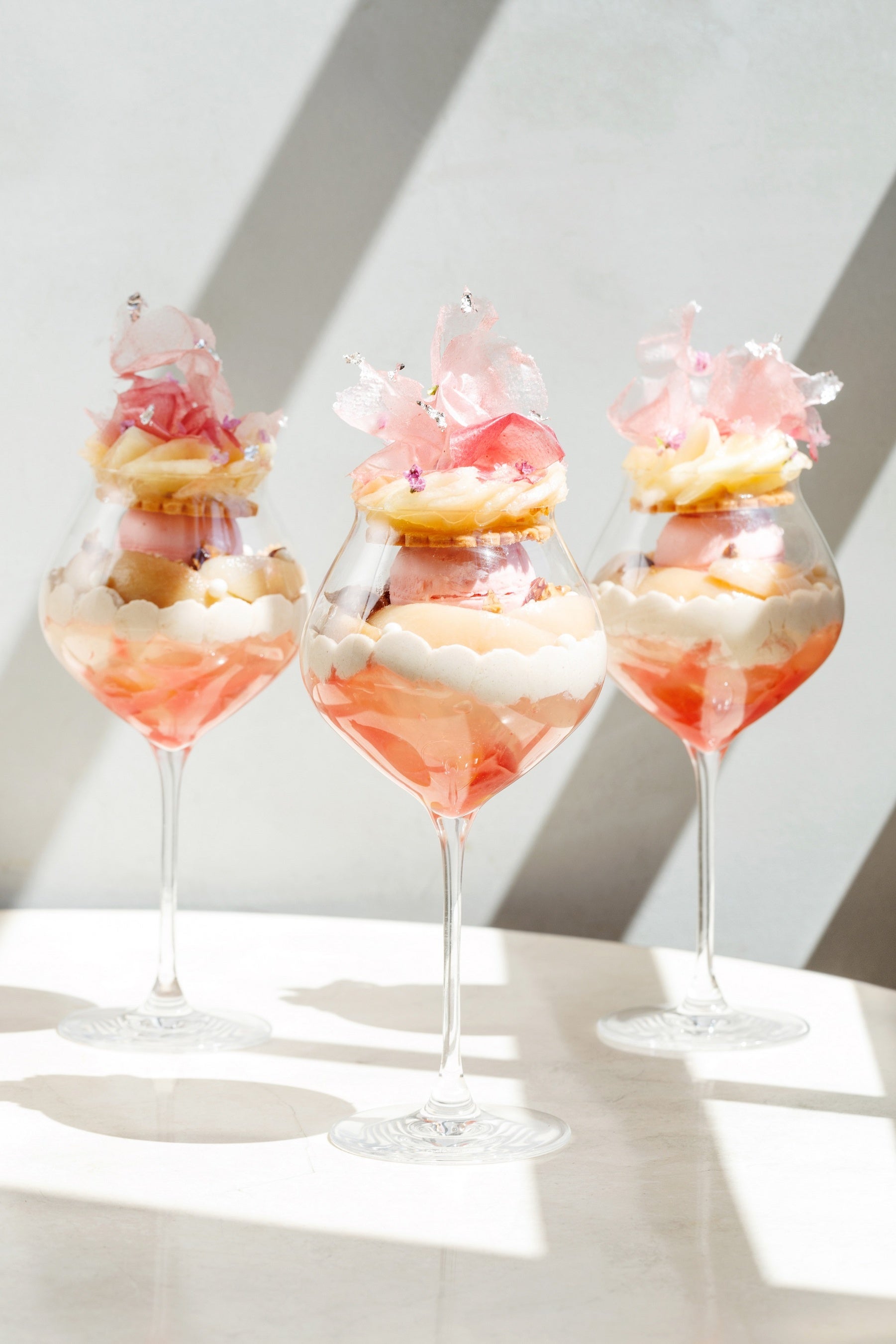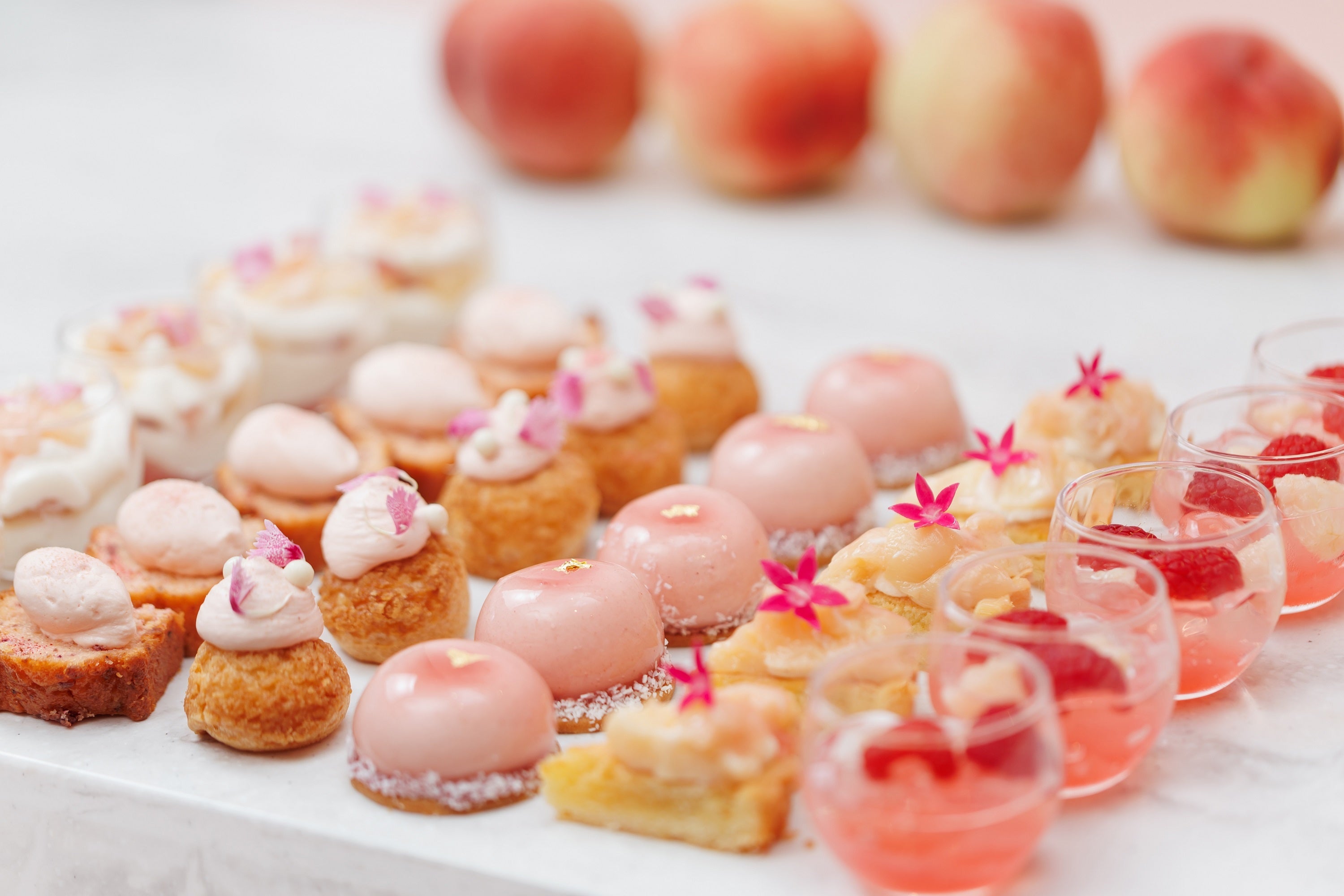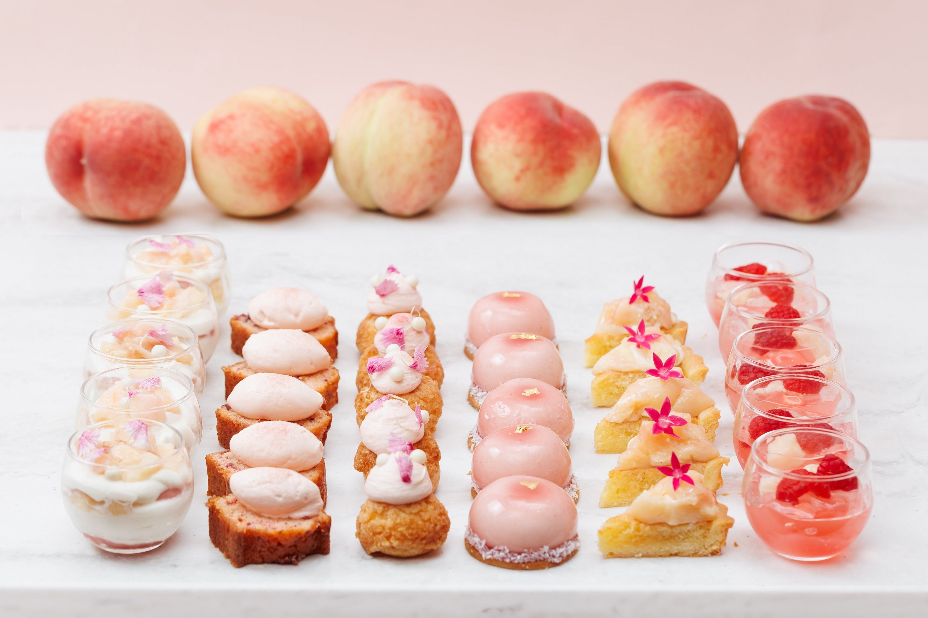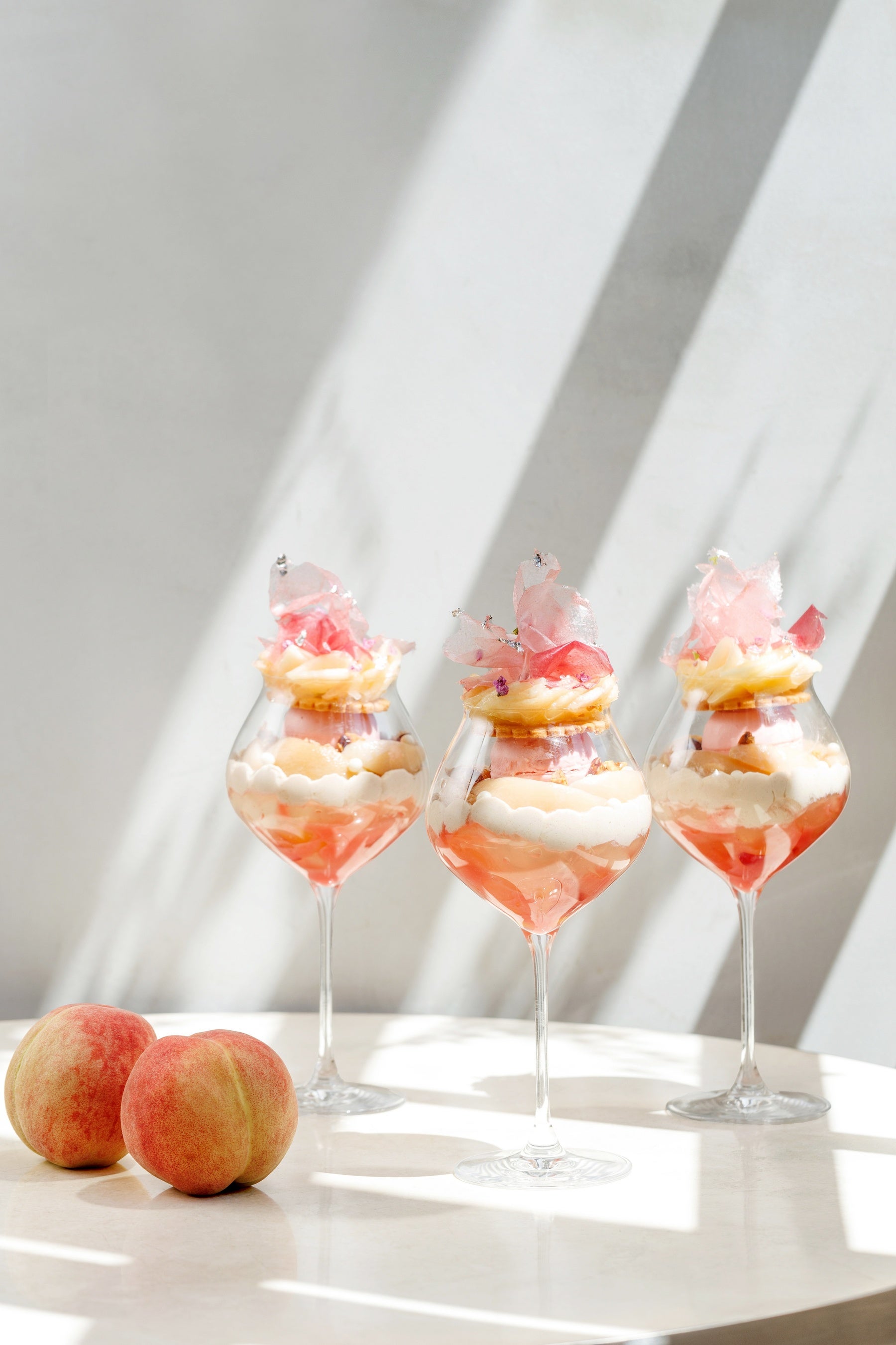 旬の桃をたっぷり使用し、桃色で彩った桃のアフタヌーンティー。桃のスムージーから始まり、セイボリー、桃のミニスイーツ、桃のミニパフェと、旬の桃を存分にお楽しみいただけます。