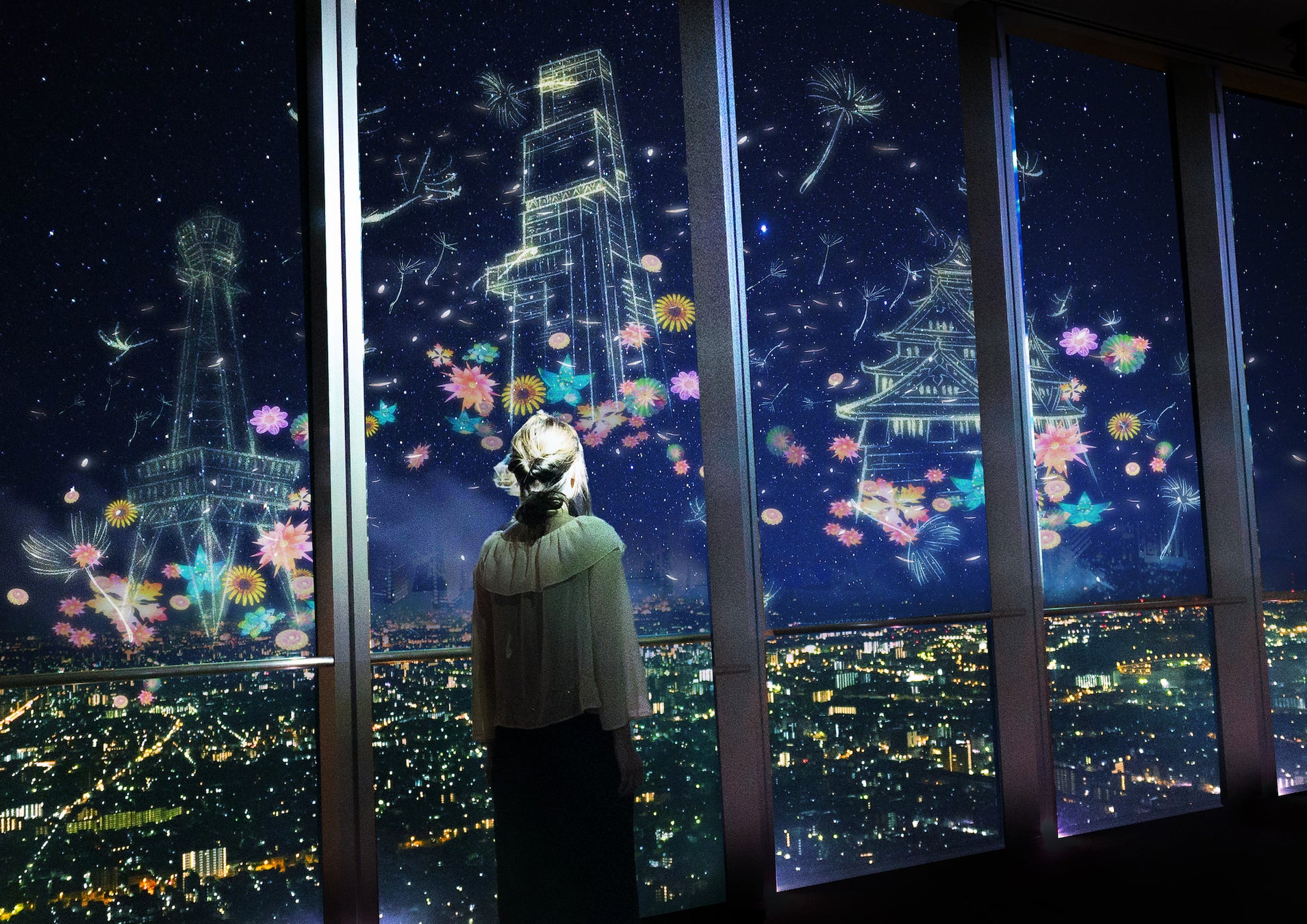 大阪・関西万博に向け、大阪の夜景に世界中の人々が咲かせていくバーチャルの花たち