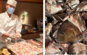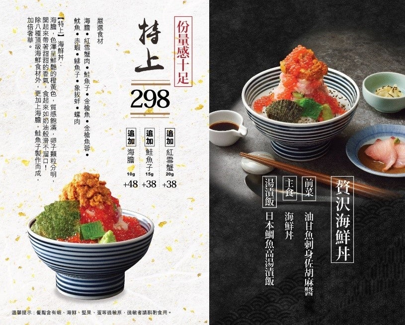 「つじ半」の海鮮丼は、一般的な海鮮丼とは異なり、様々な種類の魚介類を刻んで混ぜ合わせ、丼の上に海鮮の「山」を作ります。締めとして特製の鯛だしを使用したお茶漬けを堪能することができ、一つのどんぶりで二つの異なる味を楽しめる贅沢な海鮮丼です。この特製の鯛だしは、化学調味料を一切使用せず、数十キロの鯛と様々な魚介類や野菜を使って職人が8時間以上かけて煮込んだもので、濃厚な海鮮の香りと、すっきりとしたキレのある風味が特徴です。この味を香港で再現するため、本店の料理人が味を確かめに何度も香港を訪れ、改善を重ねました。