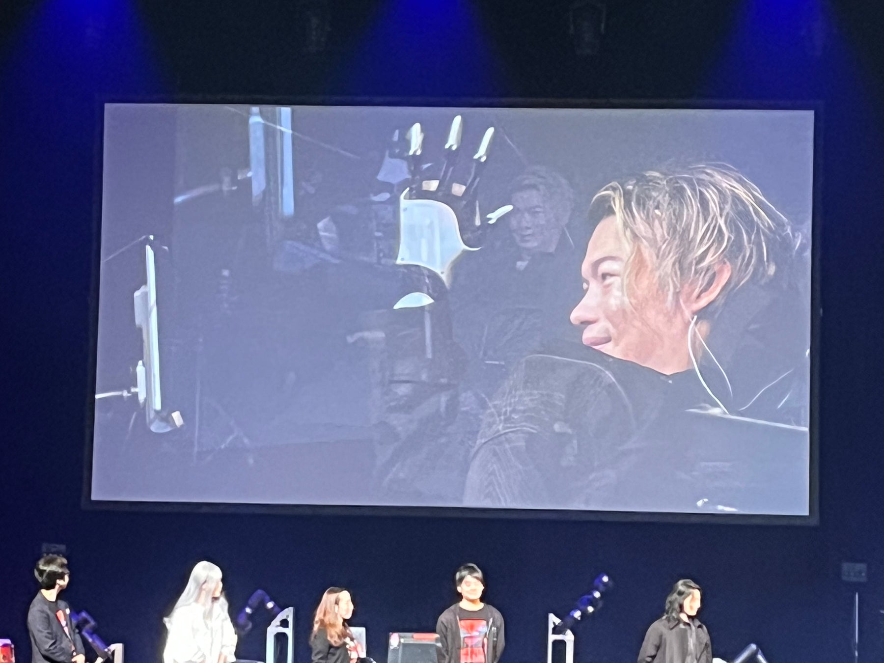 武藤氏自身が視線コントロールでDJ・VJを操作する「EYE VDJ MASA」のライブステージでは、筋電センサーでコントロールするデジタルアバターや、脳波でコントロールするロボットアーム演出など、最先端のテクノロジーを融合した世界初の身体拡張ライブに挑戦。また、EYE VDJ MASAのステージ楽曲4作は、すべて視線入力で作詞作曲したオリジナル曲。見事に脳波によって自身でロボットアームを上下左右に操作することに成功しました。