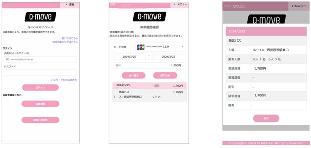 交通事業者向け決済及び認証のプラットフォームを提供する QUADRAC株式会社の Q-move サイト( https://q-move.info/ )にアクセスいただき、「マイページ」の会員登録手続きの後ご確認いただけます。