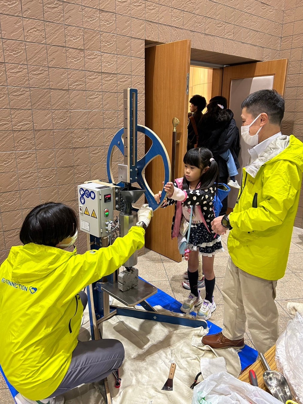 MUP交流会にて体験したキャップ成型機や、作成した紙芝居を使った子ども向けのワークショップを企画し、2025年2月16日に開催された学生委員会主催の「Chiba Winter Fes 2025」にて実施しました。62人の子どもたちが参加し、紙芝居で学んだあとにペレット化したキャップからカラビナを作る体験を行いました。また、3月9日に開催された学生委員会主催の「こどもエコまつり」でも紙芝居を実施して、プラスチックの分別やリサイクルについて啓発しました。