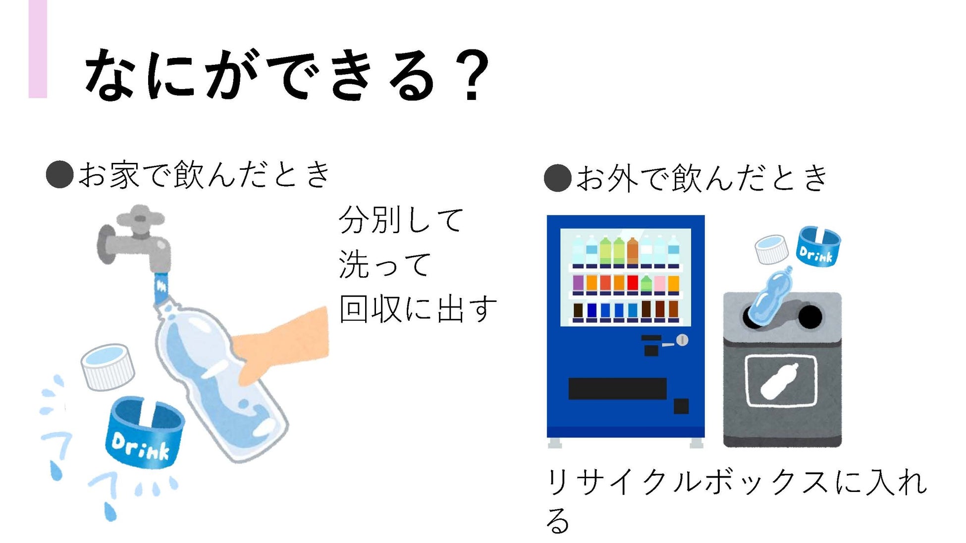 工場見学や交流会で学んだことを活かし、ペットボトルキャップの分別やアップサイクルについてわかりやすく紹介する紙芝居を作成しました。