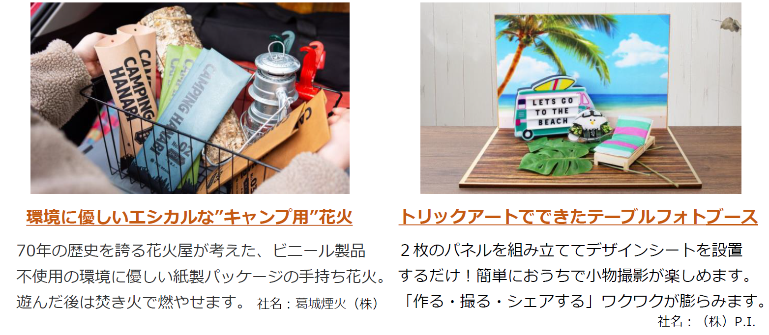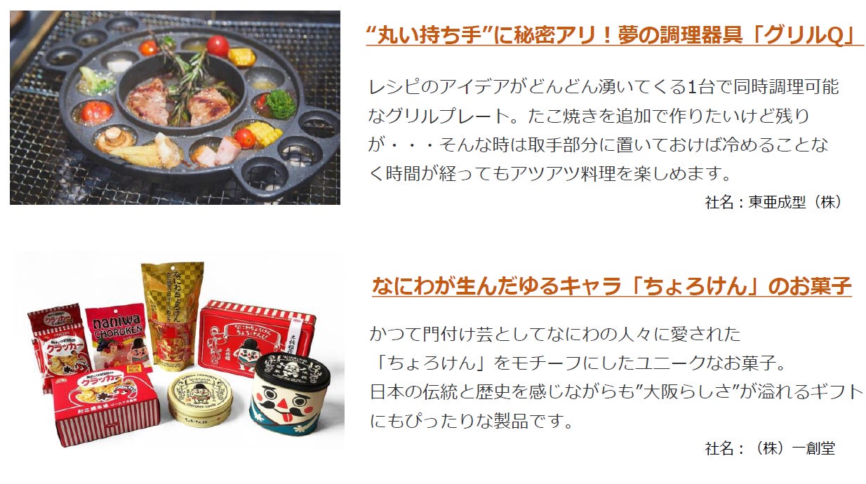 トレンドの「サステナブル製品 」や「 アウトドアグッズ 」、大阪らしさあふれる「ご当地グルメ 」などに加え、 まだ世の中に出ていない未販売の製品 も出展予定です。