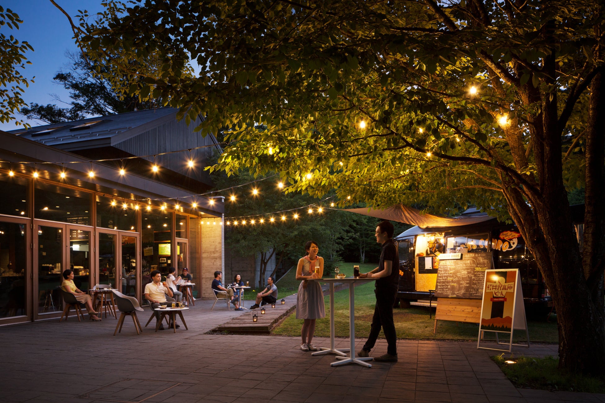 軽井沢は標高1,000m前後の高原に位置し、夕方になると心地よい涼しい風が吹き抜けます。そんな軽井沢の夕暮れ時には、音楽とともにクラフトビールを楽しむ「よなよなラウンジ」を開催します。地元で活動するミュージシャンが、その空間に合った曲を演奏し、ゆったりとした時間を演出します。