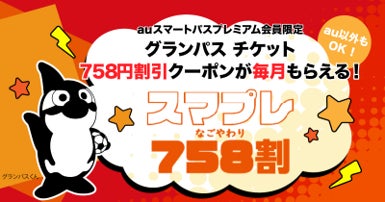 内容 | Jリーグ「名古屋グランパス」のホームゲーム観戦チケットについて、「auスマートパスプレミアム」会員を対象に1回のチケット合計購入金額から758円を割引くクーポンをプレゼントします。 |
