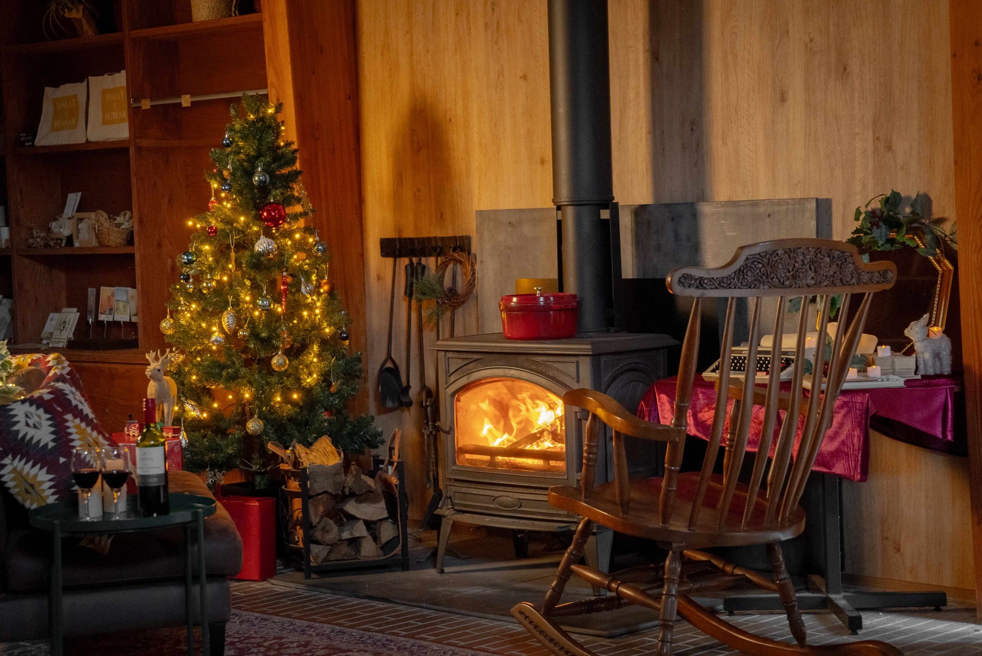本館ラウンジの暖炉には薪火の灯がともります。薪のはぜる音を聞きながら、ロッキングチェアにゆられる時間――。いつもとはひと味違うクリスマスをぜひお楽しみください。