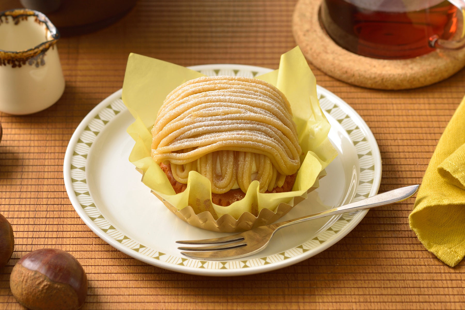 和栗のつぶつぶ食感が楽しめる“和栗ダイス入りクリーム"と、ふわふわスポンジにサンドした和栗の濃厚な味わいが広がる“和栗ペーストクリーム"、上面にたっぷり絞った淡く繊細な味わいの“和栗クリーム"。3種の和栗クリームが互いを引き立て合い、香ばしい和栗のつぶつぶ食感がアクセントとなって最後のひとくちまで和栗のおいしさをご堪能いただけます。